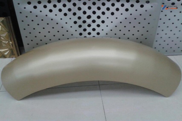 另外一方面,由于双曲铝单板独特的造型,在油漆喷涂的时候就不能采用常规的静电油漆喷涂,需要进行人工喷涂。这样做,有助于防止铝单板表面油漆喷涂图层不均匀的问题,避免出现影响装饰效果的问题。