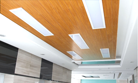 仿木纹色装修风格多呈现于新中式和日式的吊顶和墙面上,目前最经常使用的是铝单板材料。通过仿木纹铝单板的装饰,能改变以往装修生硬冰冷风格,从纹路直到色泽,保持木材原色,让人有置身大自然的愉悦感,在有限的空间里诠释贴近自然的理念。同时,让房间看起来干净整洁,能避免过多艳丽的颜色对眼睛的伤害,简约又不失大方。