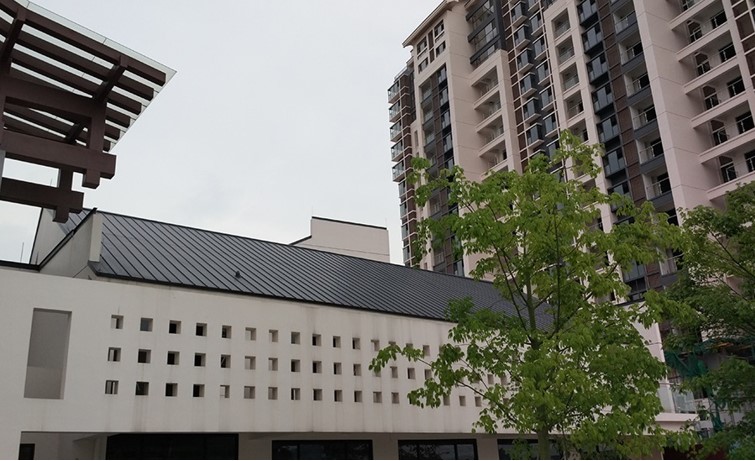 基于此,正一铝瓦作为国内知名的铝瓦供应厂家,在被选中为世界客商中心铝瓦工程的建筑屋面瓦供应商后,正一为该项目独家提供了铝单板及现代屋面铝瓦等产品。从空中俯瞰,客商中心主体结构外方内圆、白墙灰瓦,具有浓厚的客家特色。