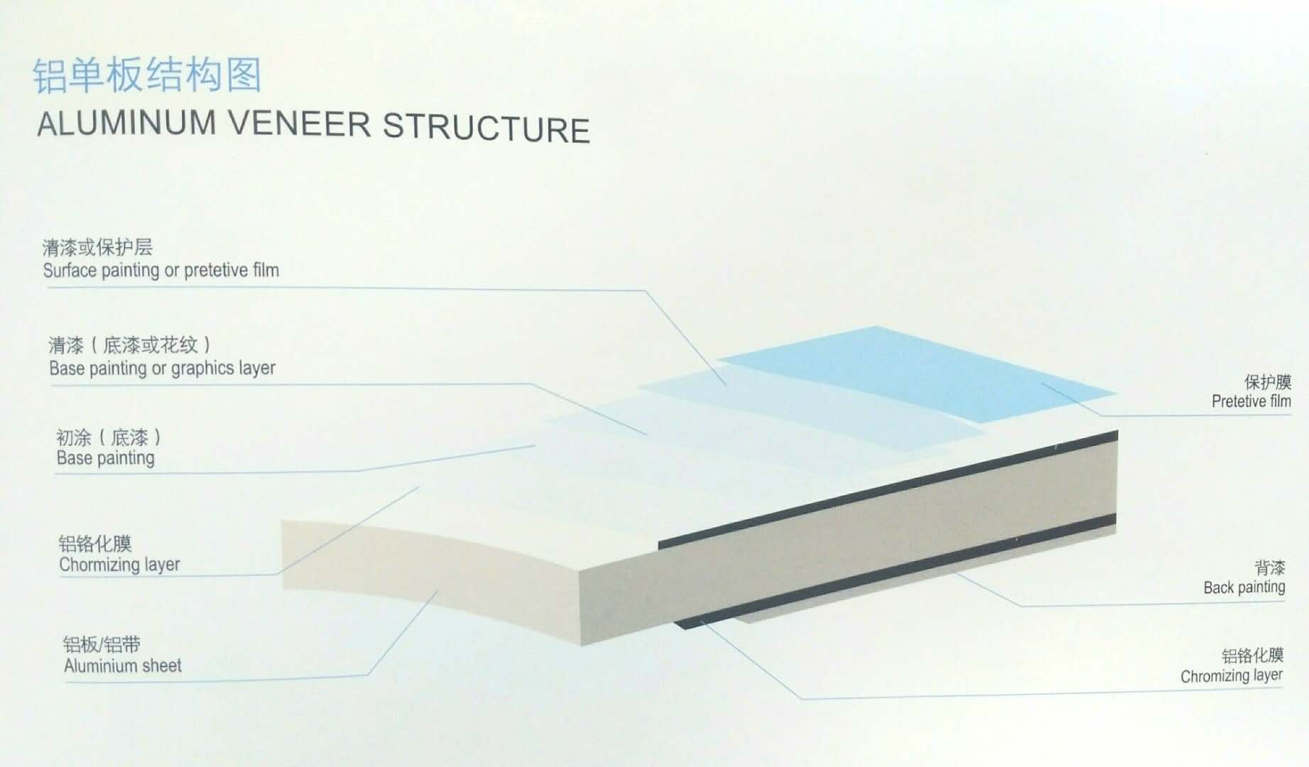 铝单板采用优质高强度铝合金板材,其常用厚度为2.0,2.5,3.0,型号为2003,状态为H24,其常规材料最大尺寸为1220mm*2400mm。其构造主要由面板,加强筋和角码组成。角码可直接由面板折弯、冲压成型,也可在面板的折边上安装角码。加强筋与板面后的电焊螺钉连接,使之成为一个牢固的整体,极大增强了铝单板的强度与刚性,保证了长期使用中的平整度及抗震能力。如果需要隔音保温,可在铝板内侧安装高效的隔音保温材料!